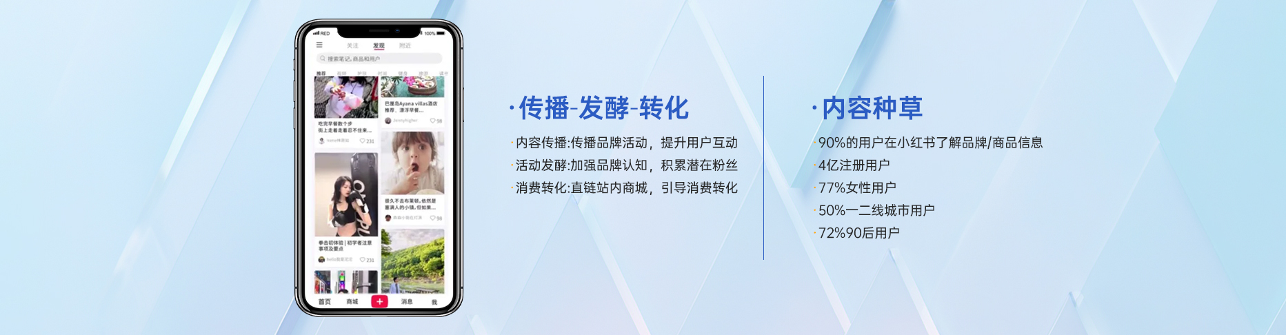 ②用户画像精准:用户以年轻女性为主,18-35岁的用户占比最高,其中24-29岁的用户是主要人群,女性用户占比在80%以上,且主要分布在一线和二线城市。这部分人群具有追求时尚、品质生活,消费欲望强烈,对新鲜事物接受度高,乐于分享和交流等特点,是众多品牌尤其是时尚、美妆、生活方式等品类品牌的精准目标受众。